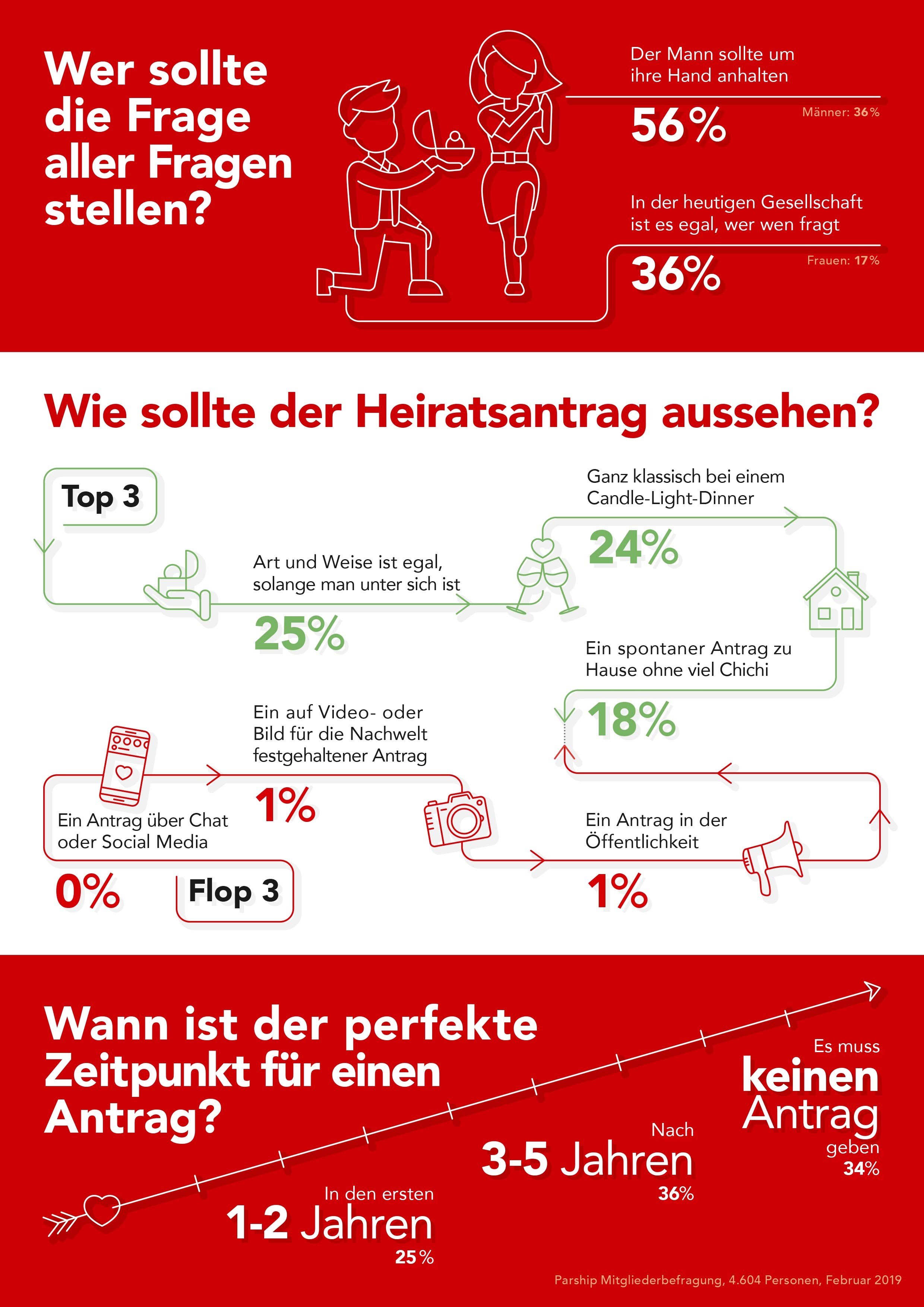 | Ich habe mir bisher keine Gedanken über den Heiratsantrag gemacht. | 27 % | 28 % | 26 % |